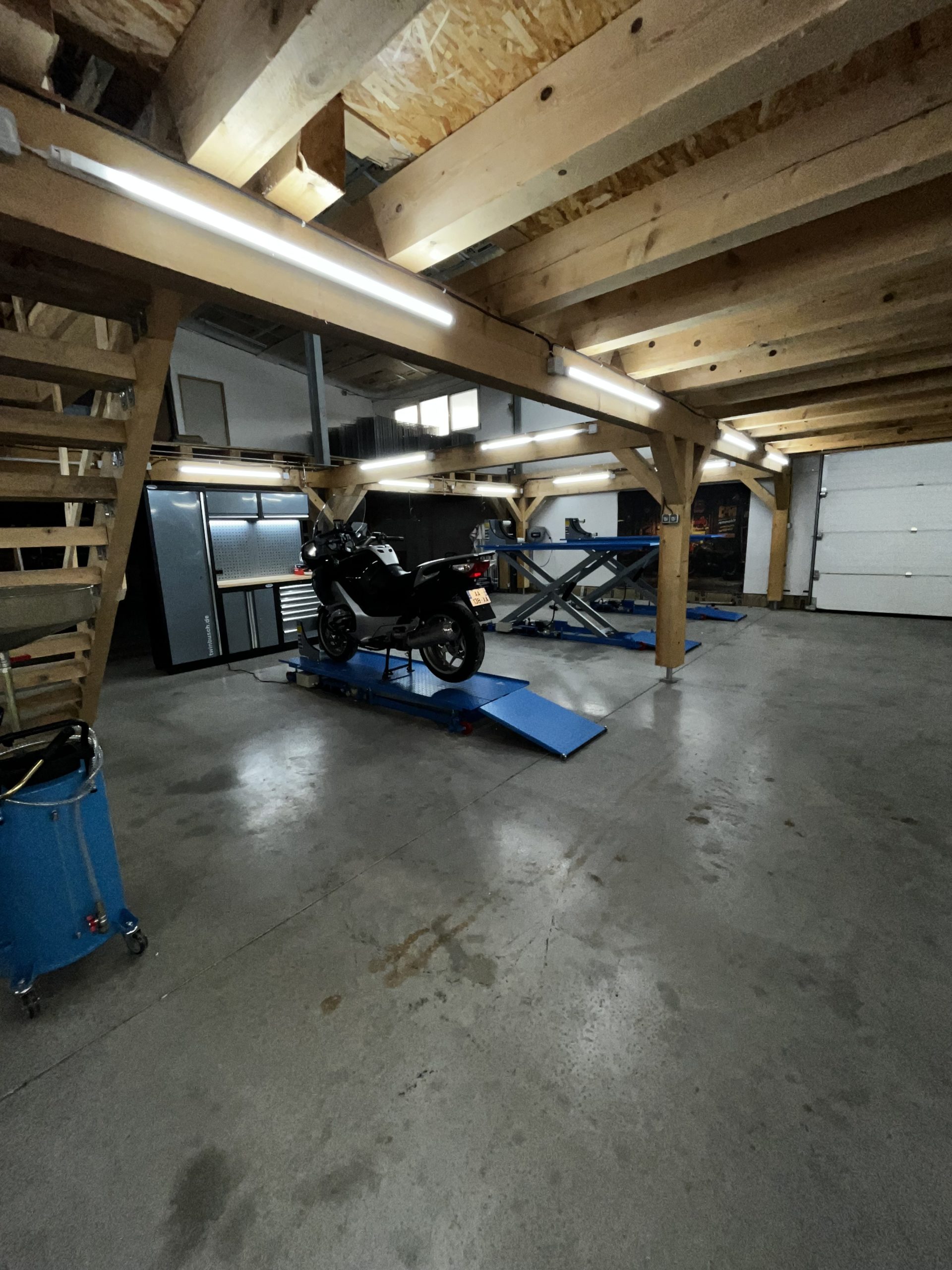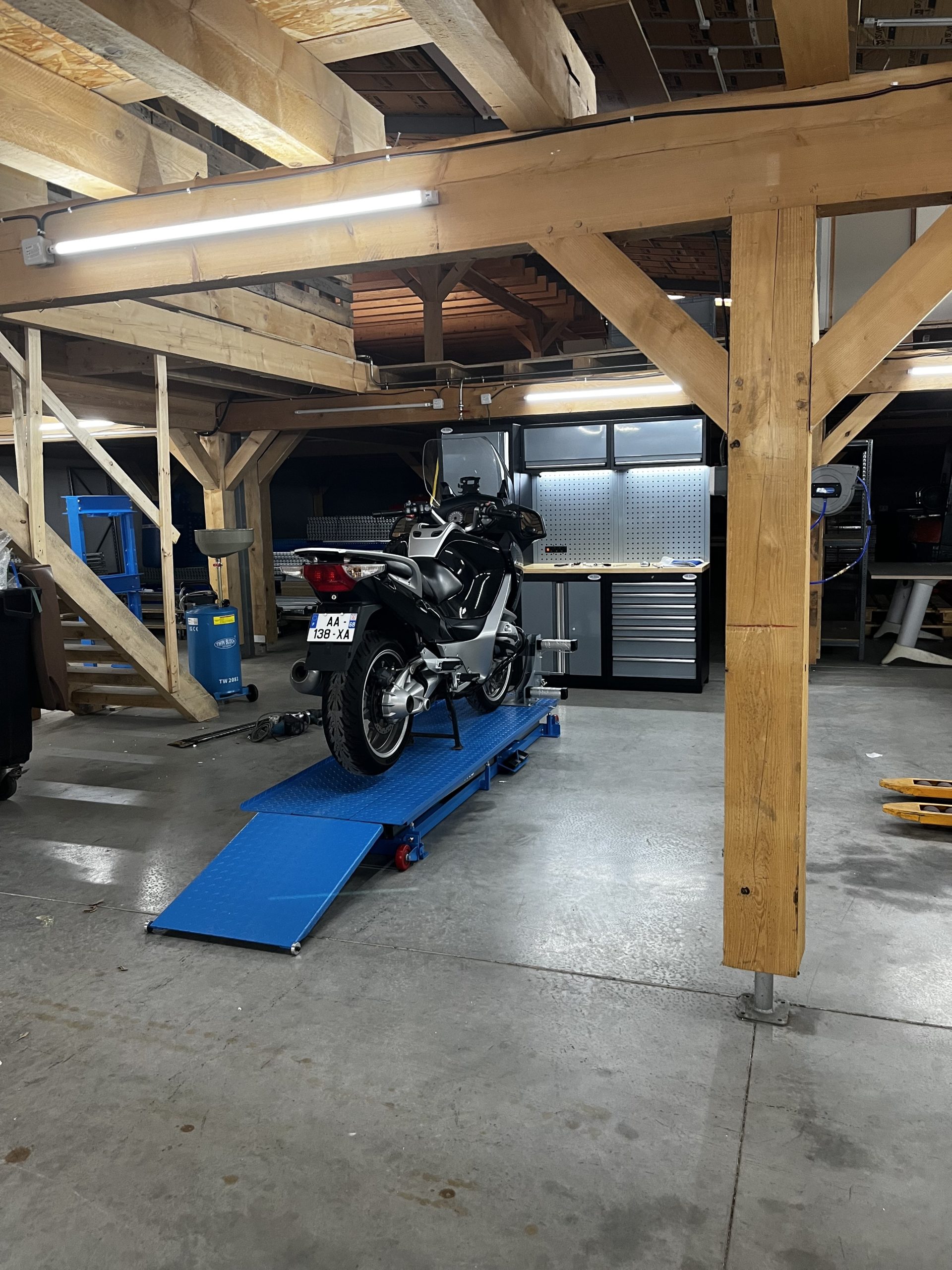 Notre espace self-garage est ouvert à tous les passionnés, quel que soit leur niveau. Vous disposez d’un poste de travail complet avec une table élévatrice, d’un lève moto, d’une servante complète avec établis tout équipé.